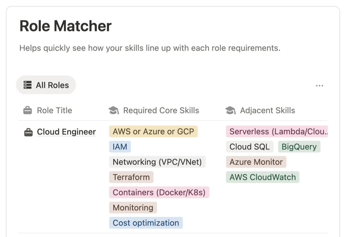Career Switch OS has tools other templates don’t, like role matching, auto roadmaps & offer comparisons.