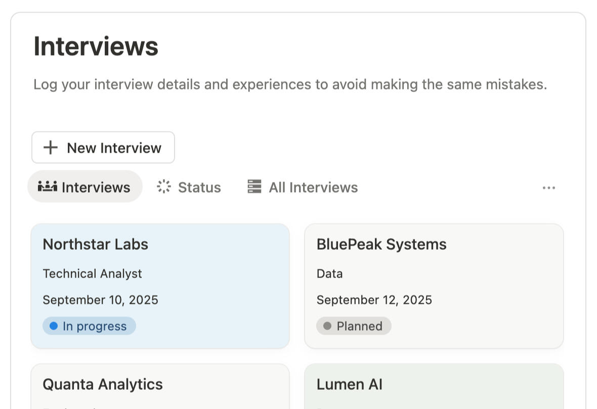“Tried job trackers, Google Sheets, even Airtable. None of them stuck. This template actually made me consistent. I already have a couple interviews lined up and I’m not losing whole evenings trying to organize any more.”